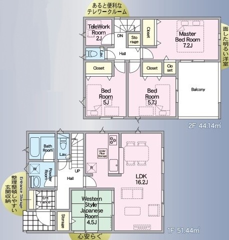 インナーバルコニー、リビング横に和室、浴室換気暖房乾燥機、24時間換気システム・オールインワン浄水栓、シックハウス対策、複層ガラスサッシ、トイレ2箇所等充実設備!