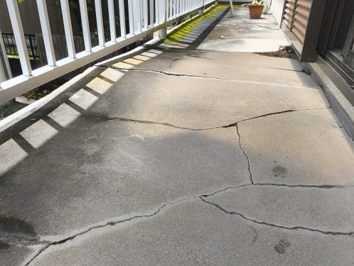 今回は浸水によりベランダの床が倒壊寸前になっていたこちらの現場です。