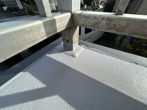 特にベランダの手すりが防水面を貫通する部分は注意が必要で、足元だけ防水処理しても手すり柱内部から浸水することもあります。