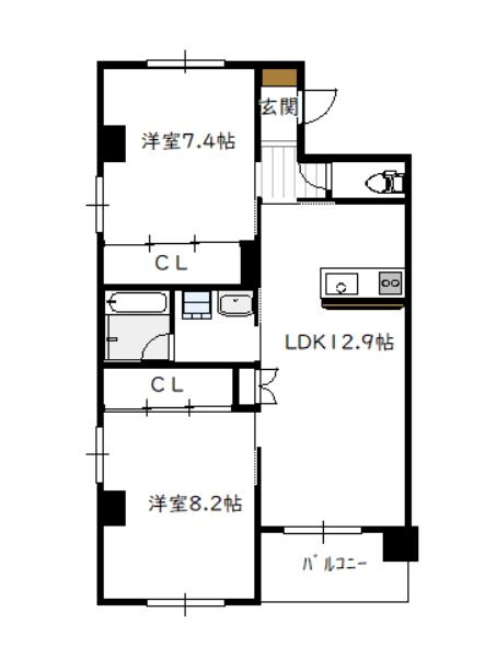 大橋3丁目のRC造りの2LDKです。